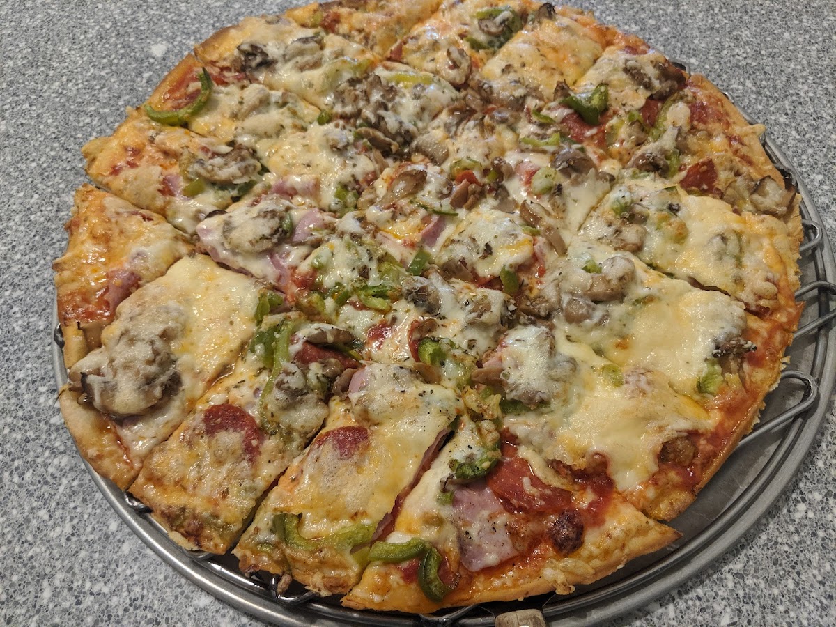 Large Pizza Half Ham & Onion Other Half Italian Sausage & Mushrooms